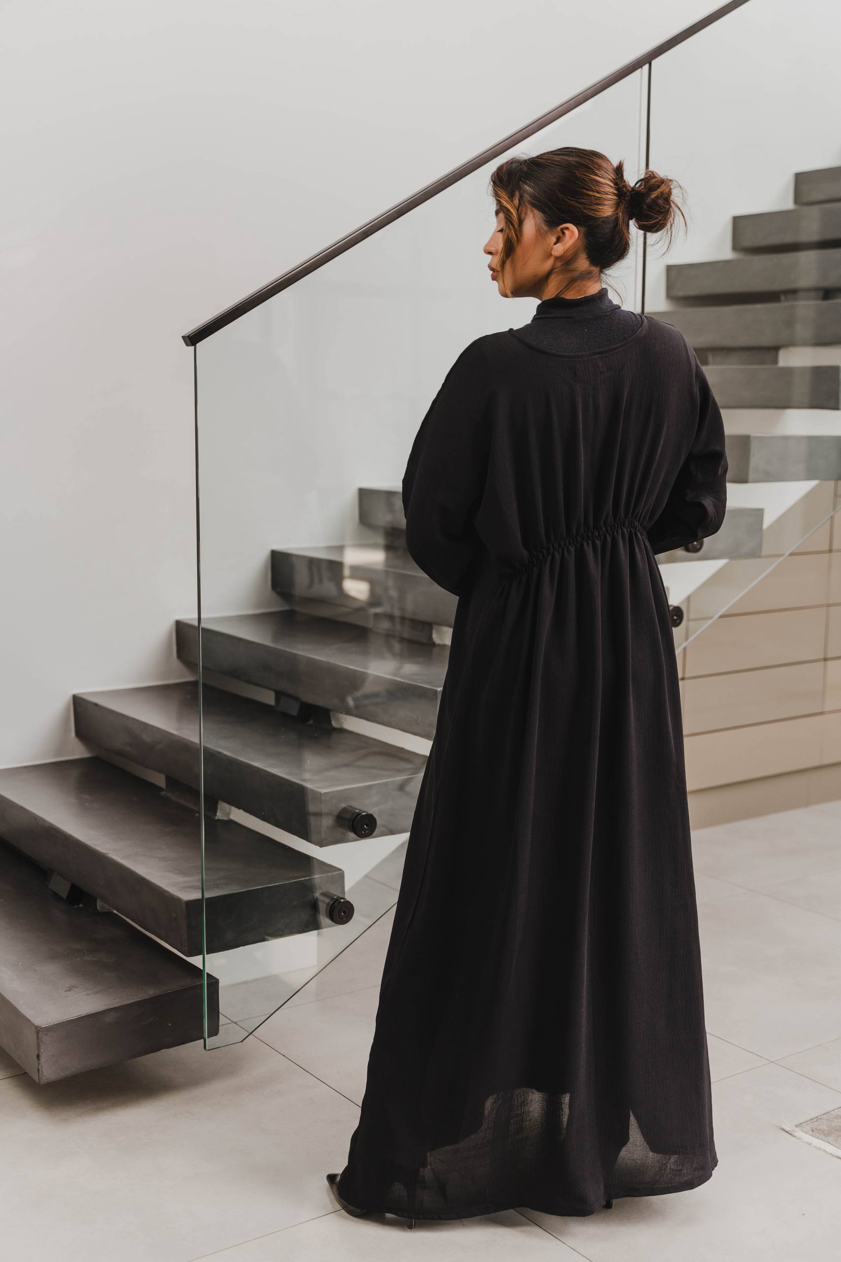 Elevate your modest wardrobe with this sophisticated abaya crafted from premium Korean Nida fabric, known for its silky softness, breathable comfort, and elegant drape. The standout feature of this piece is the 3D black floral embellishment on the sleeves, adding depth, texture, and a luxurious handcrafted touch while keeping the overall look refined and monochromatic.