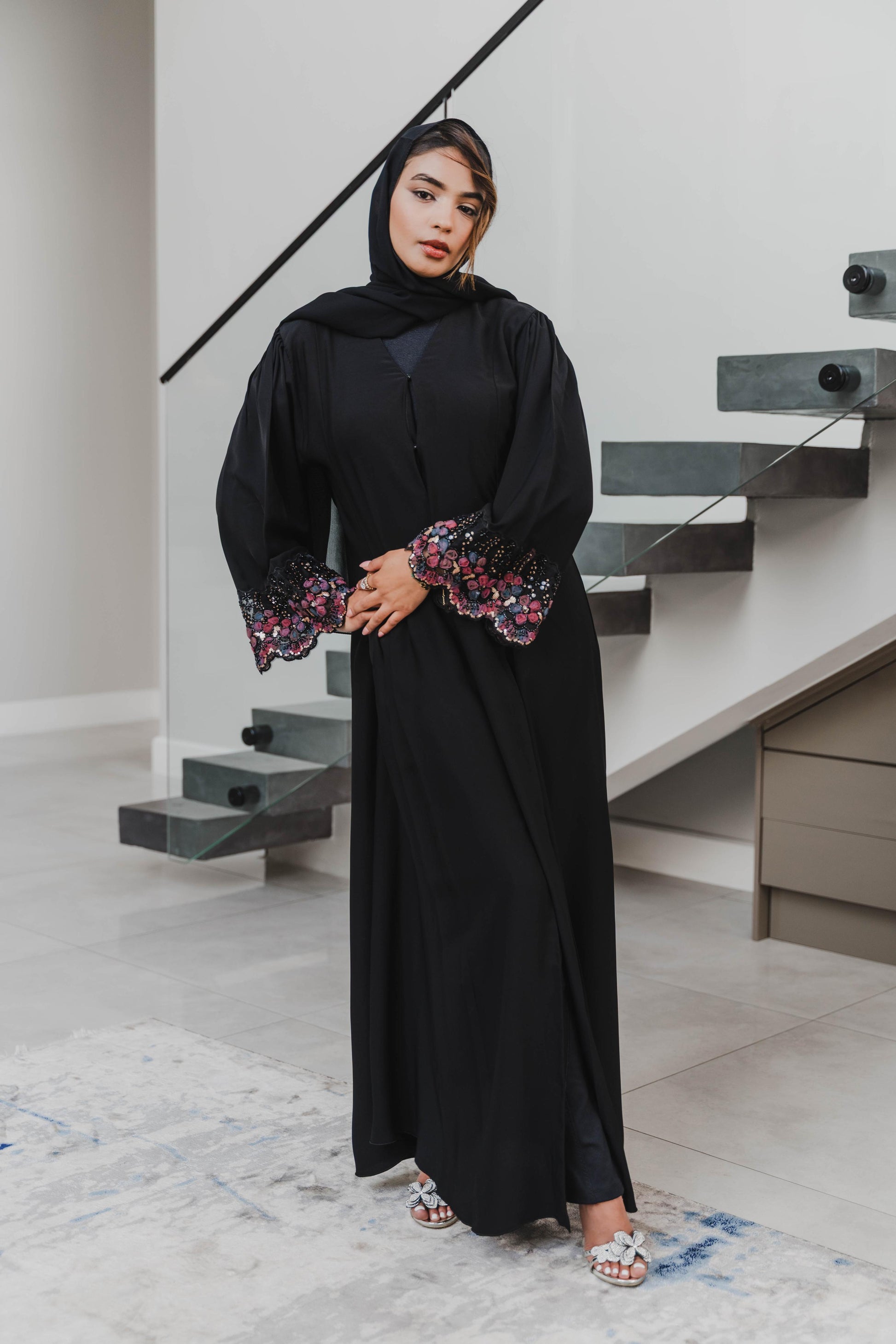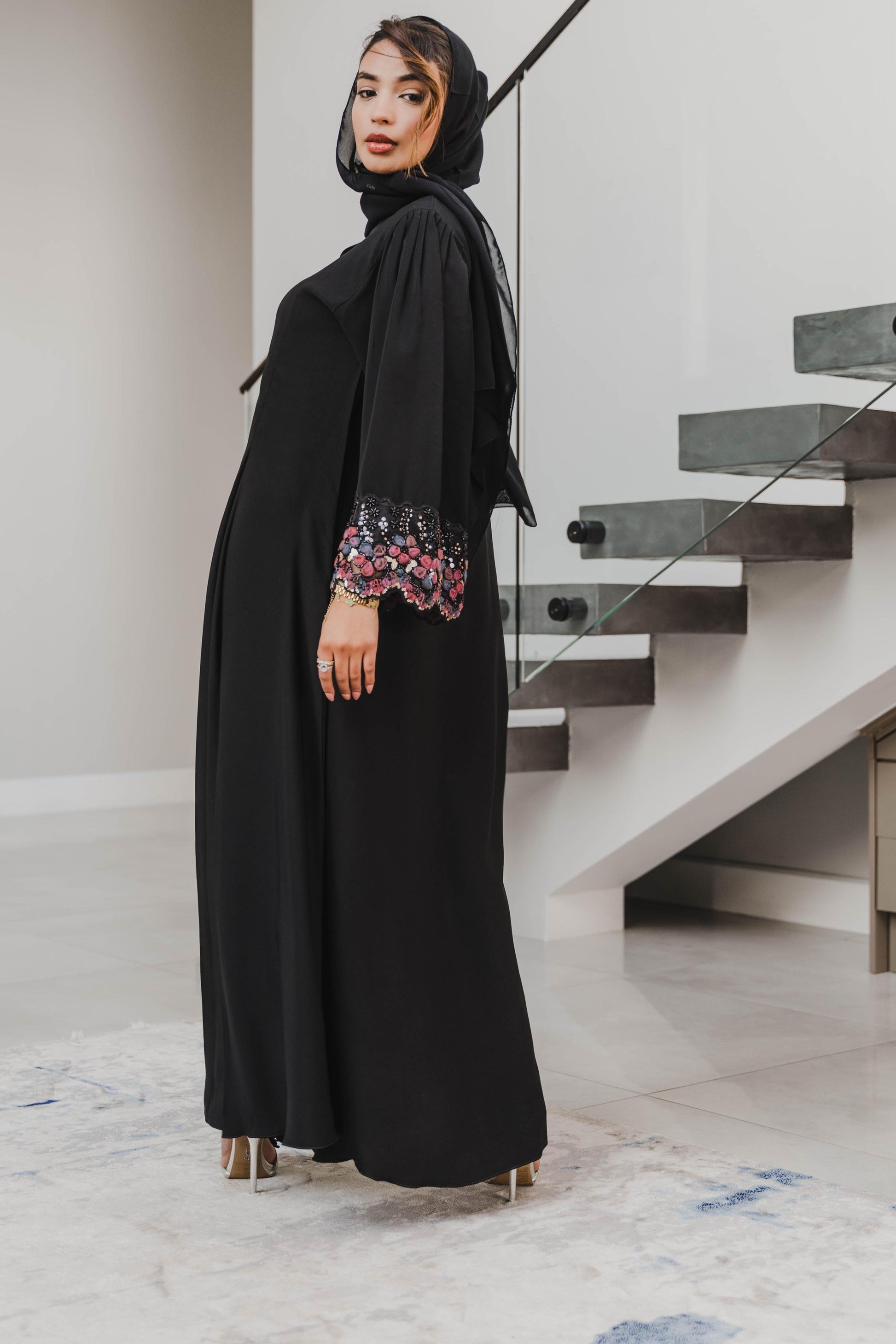 Sophisticated and graceful, the Black Abaya with Sleeve Lace Work embodies the quiet power of simplicity elevated by exquisite detail. Crafted from premium korean nida abric, it drapes fluidly with a soft, luxurious texture that flatters every silhouette.