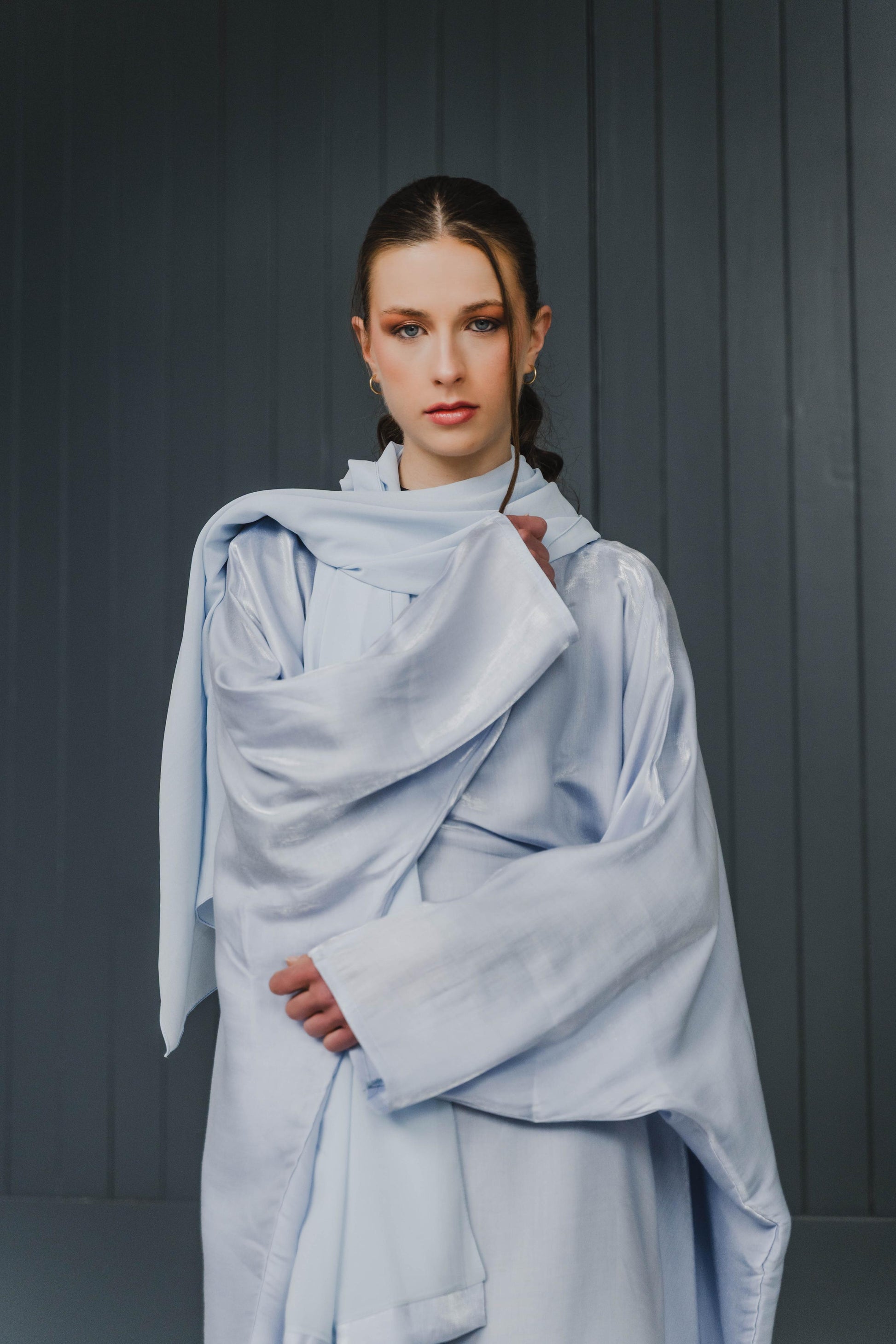 Soft as moonlight and graceful as a breeze, the Lilac Shimmer Kaftan embodies the essence of refined femininity. Crafted from premium opaque shimmer fabric, it drapes fluidly with a delicate sheen that glows gently under the light β luxurious yet effortlessly modest.