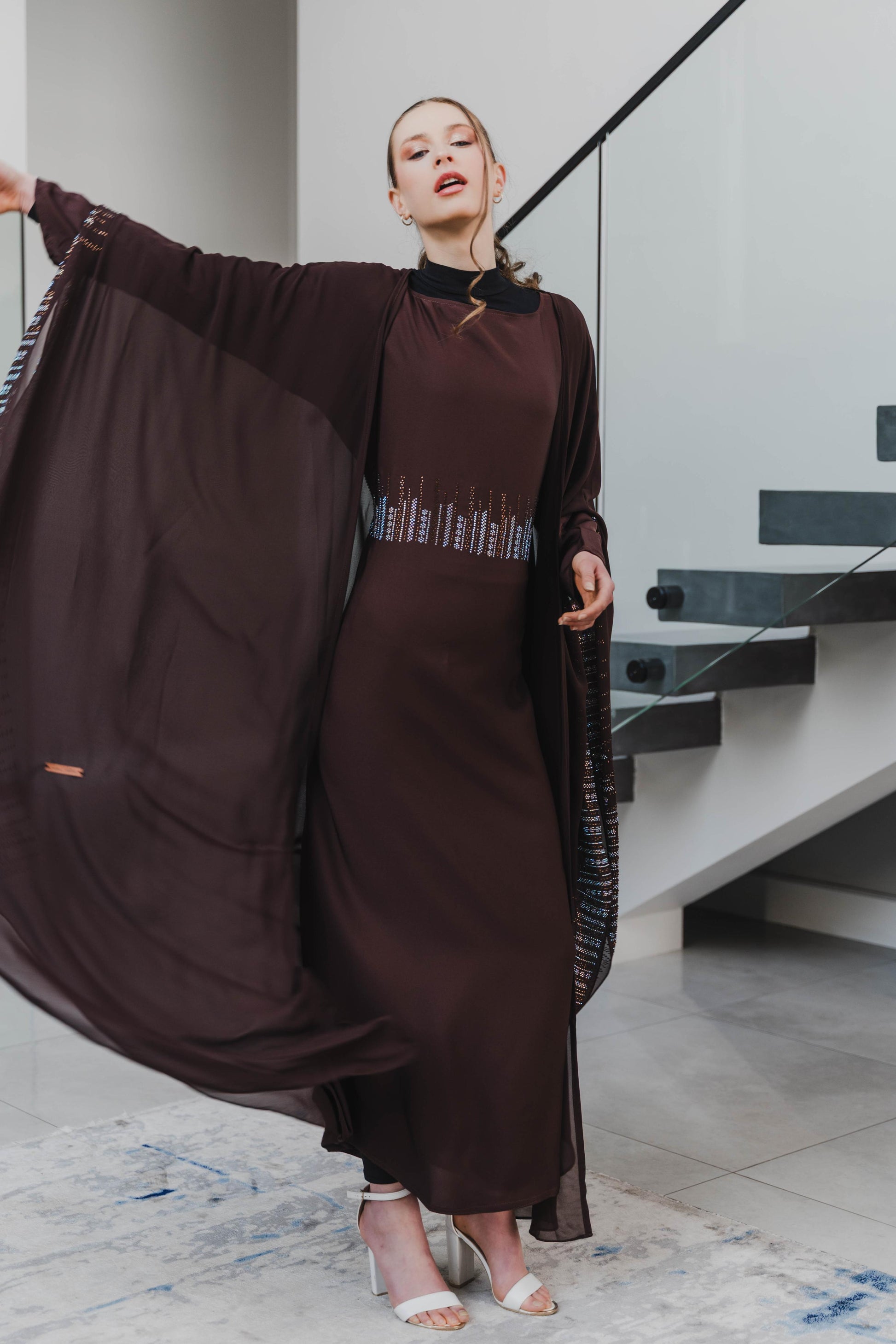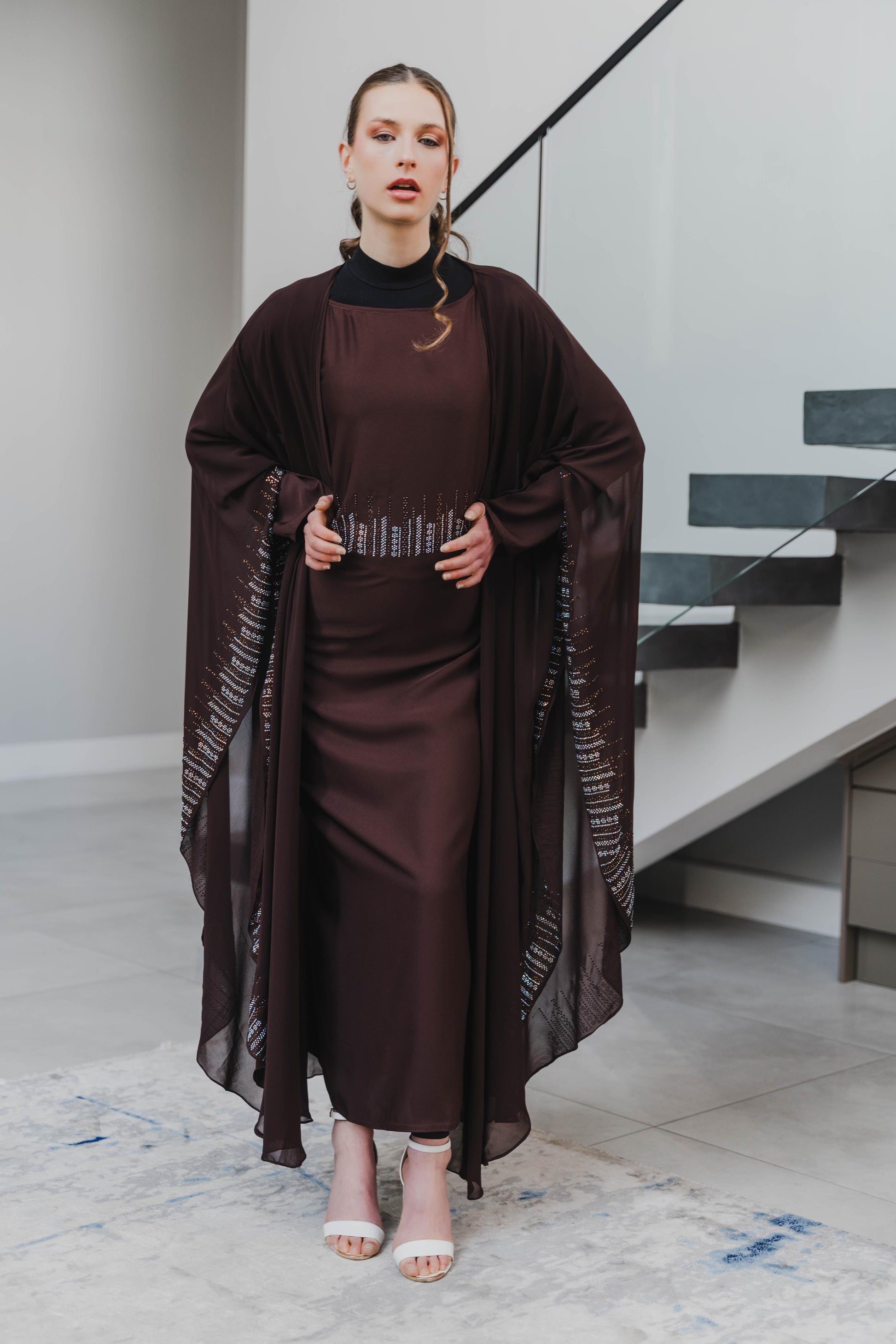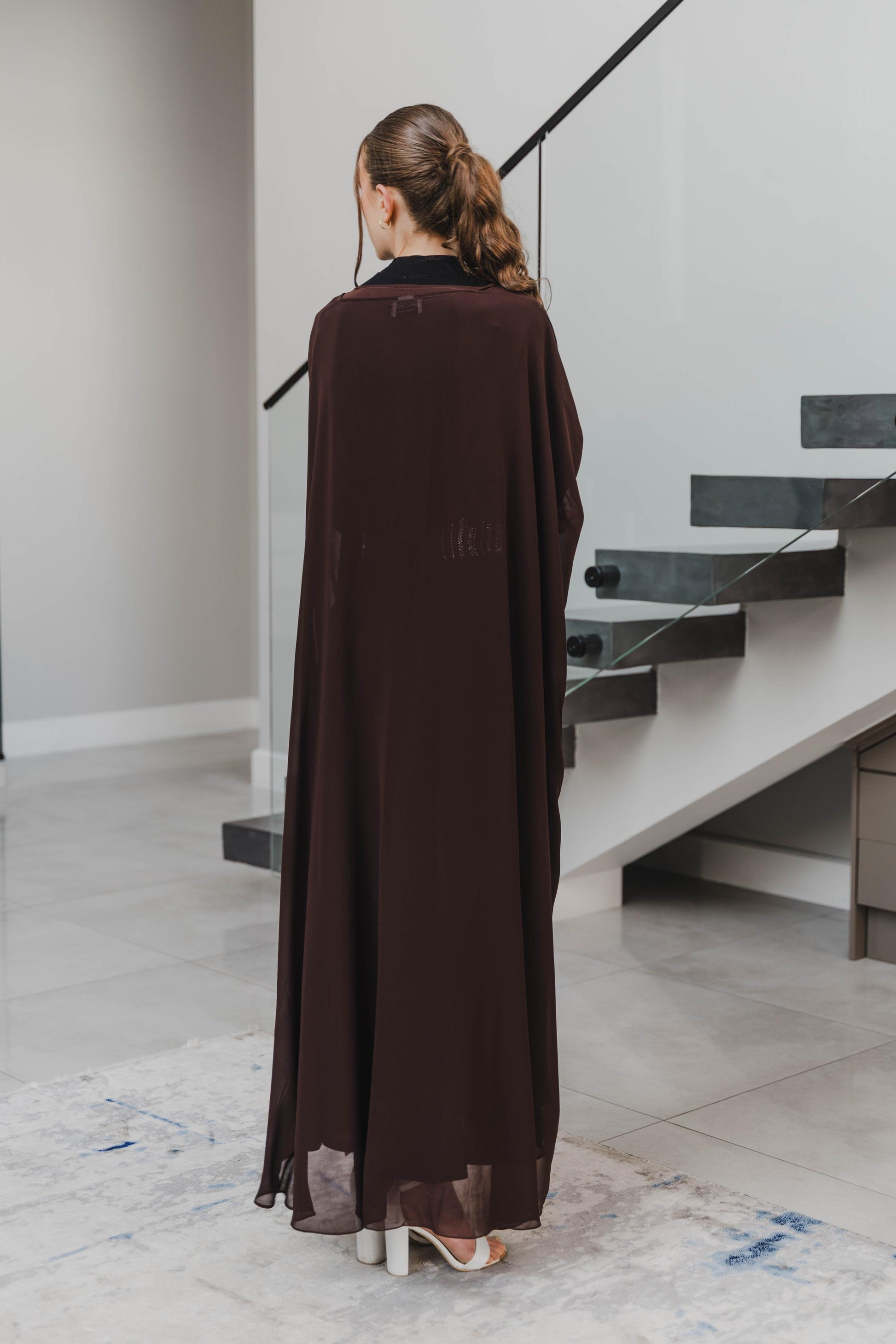 Elevate your modest style with this Brown Luxury Two-Layer Abaya, designed for elegance and comfort. Made from premium crepe and chiffon fabrics, this abaya features a refined dual-layer design that adds depth and graceful movement. The rich brown tone exudes sophistication, making it perfect for both everyday wear and special occasions.