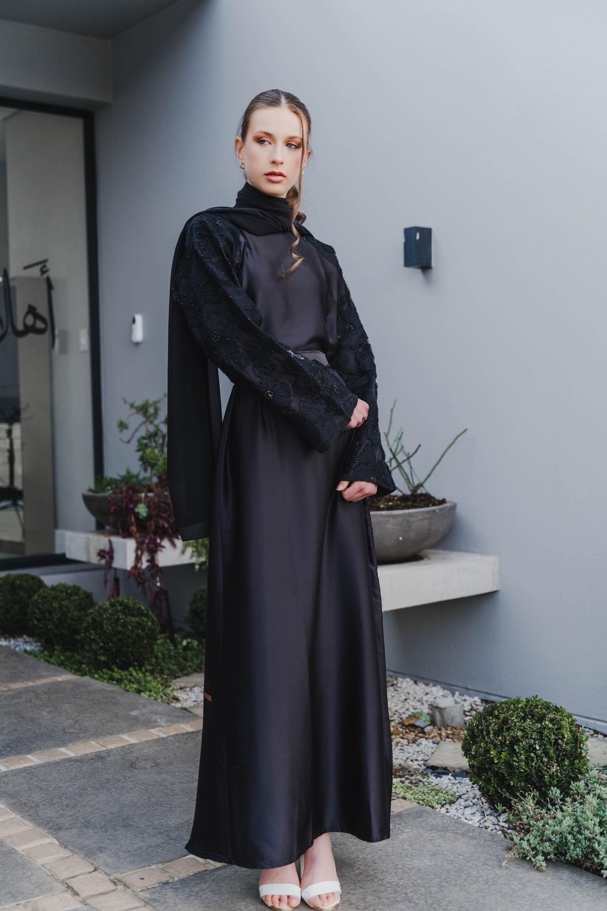 A masterpiece of refined grace, the Black Full Floral Sleeve Abaya celebrates femininity through intricate craftsmanship and timeless design. Tailored from premium opaque fabric, it drapes fluidly with an effortless silhouette that flatters every form.