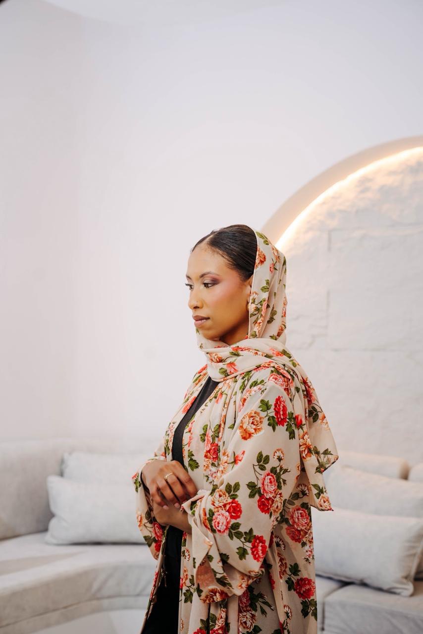 Elevate your modest wardrobe with the enchanting beauty of our Floral Throw Nude Flowers Open Abaya, a timeless statement piece designed for effortless elegance. Crafted from lightweight, flowing fabric, this open-style abaya features soft nude floral accents that create a delicate, feminine aesthetic without overpowering your look.
