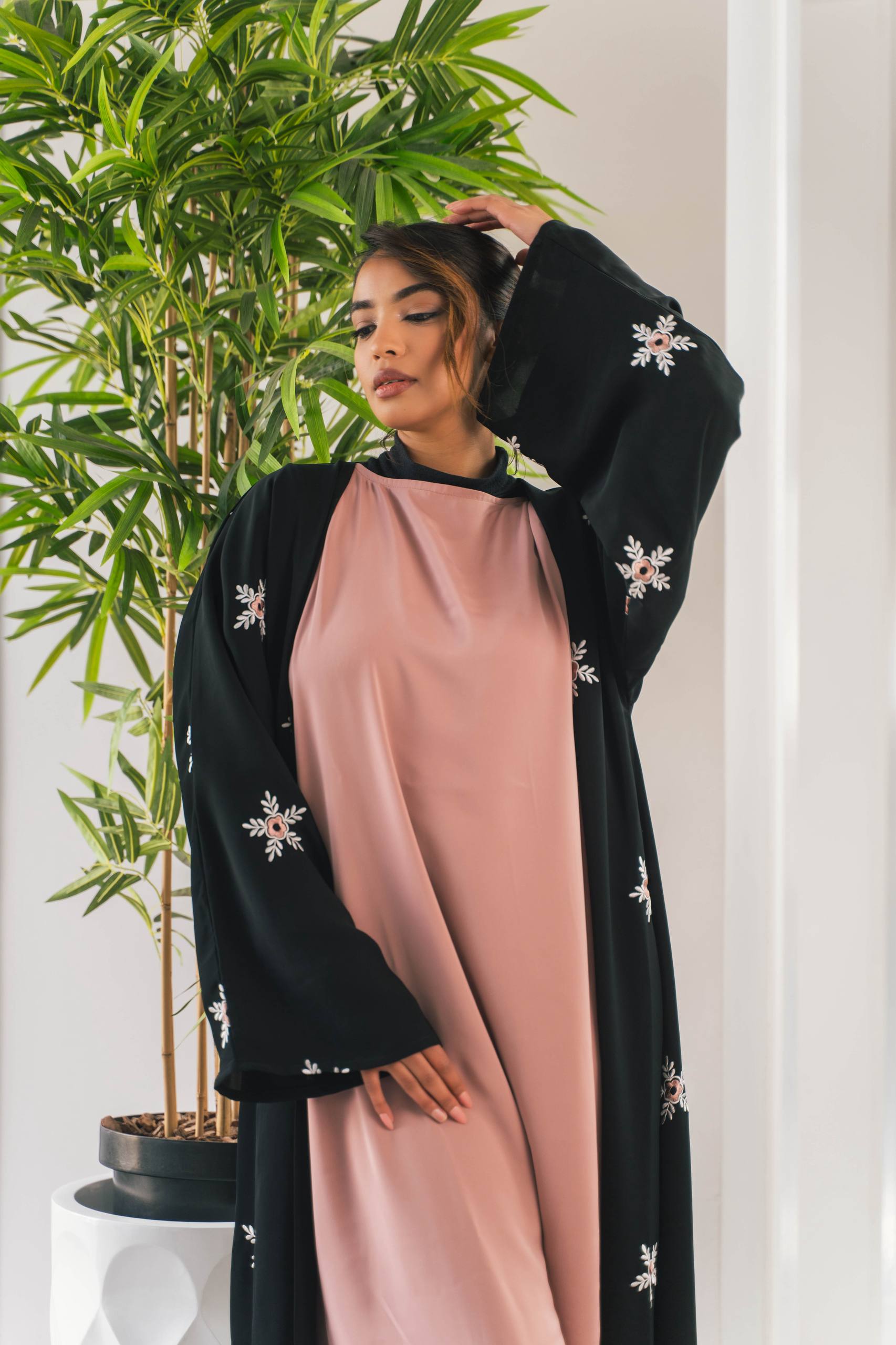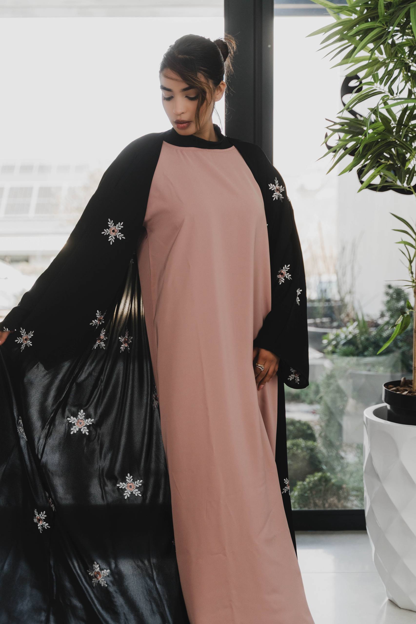 Add a touch of femininity and grace to your wardrobe with this beautifully crafted Peach Floral 2-Layer Abaya. Designed for effortless elegance, this piece features a soft peach tone paired with delicate floral detailing, creating a romantic and elevated look. The double-layer silhouette adds depth, movement, and a luxurious flowing effect that enhances every step.