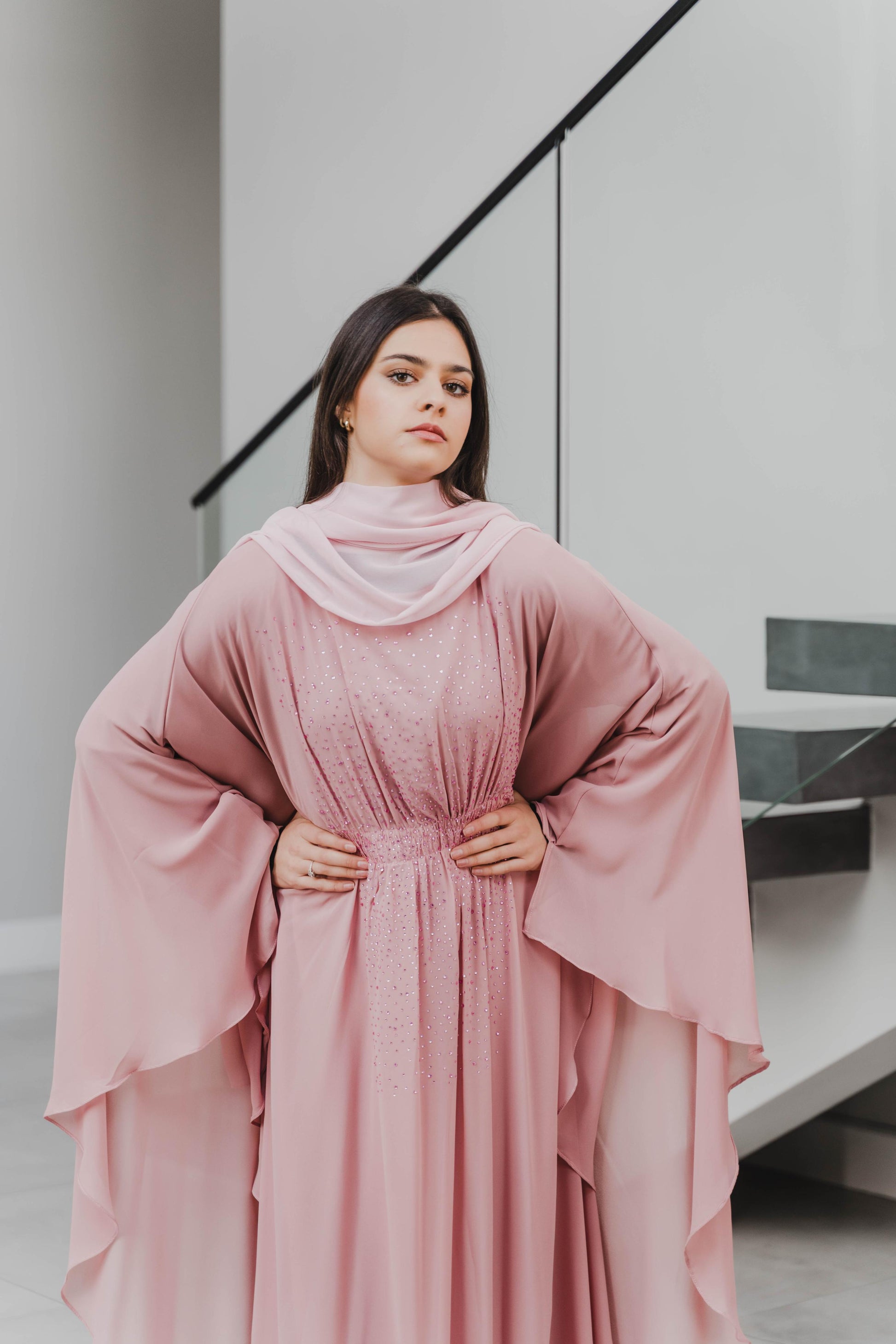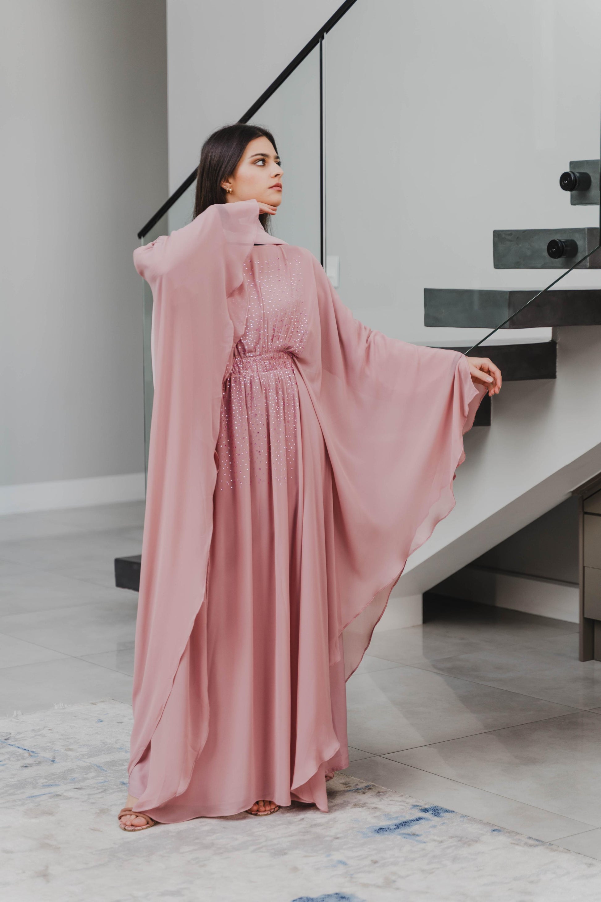 Radiate elegance and charm with our Pink Luxury Kaftan, delicately adorned with sparkling small diamond embellishments. Designed to blend sophistication with comfort, this kaftan features a flowy silhouette that flatters all body types. The soft pink hue adds a touch of femininity and grace, while the shimmering accents elevate it for festive occasions and evening wear.