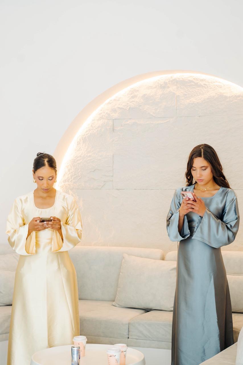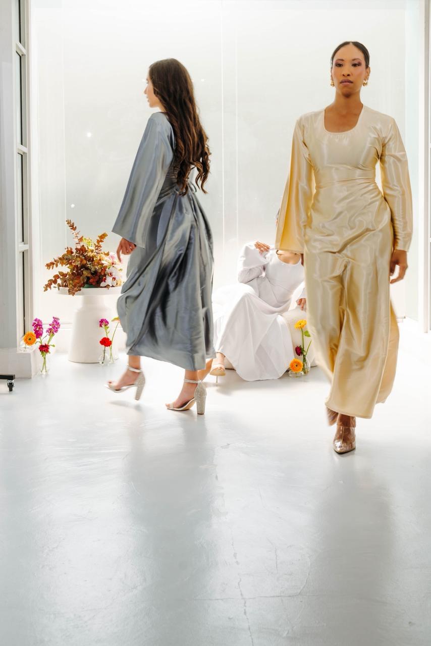The warm cream tone adds a romantic, refined touch-perfect for formal events, special occasions, or elegant evenings. Designed with modest elegance in mind, the dress features a sleek high neckline, long sleeves, and a flowing full-length skirt that moves gently with every step. The signature triple-tie back adds a unique, adjustable detail while maintaining tasteful coverage.